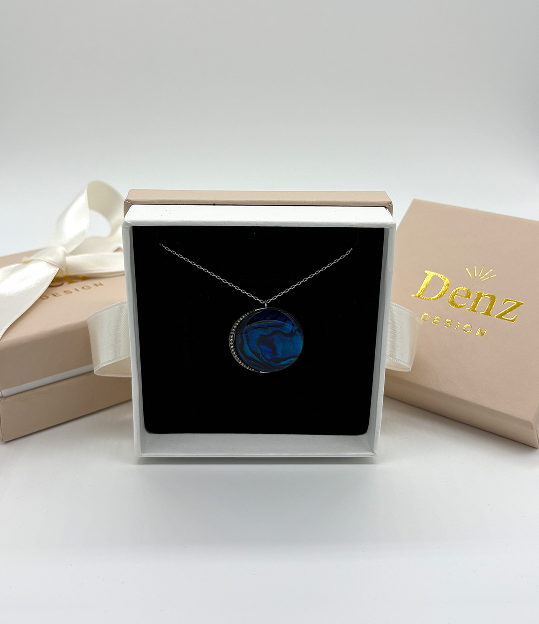 925 ayar gümüş Mavi Sedef Moon Kolye
