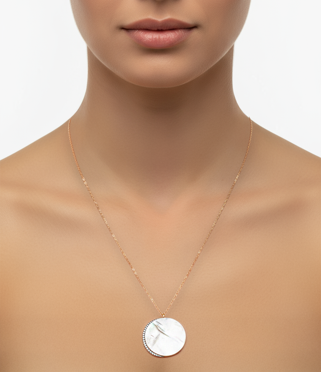 925 ayar gümüş Sedef Moon Kolye